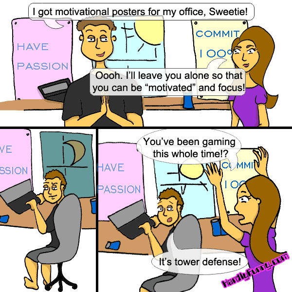 Yup. Randall got some snazzy posters for his home office and the first thing he did while being surrounded by pure positivity, was play tower defense for three days! So….the posters definitely work. If you get any of these Startup Vitamins, as they’re called, be sure to have enough willpower to use them for good.